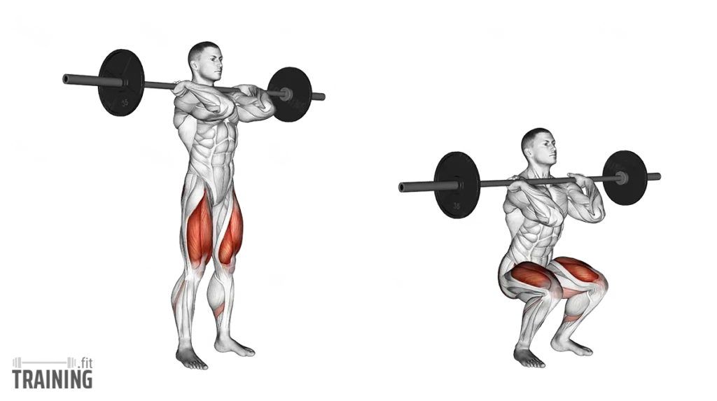 Why it works: The squat is the gold standard for lower-body strength. It allows heavy loading and activates nearly every major leg muscle.